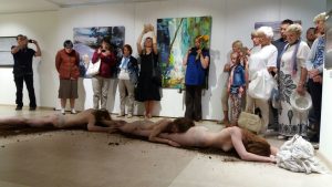 Tiekoties ar izstādes “Upe” māksliniekiem, apmeklētājiem bija iespēja noskatīties starpdisciplināro mākslu grupas “Ideagnosis” performanci “Tumšā upe”. Starp citu, šajā grupā darbojas arī Laura Feldberga, viena no šīs izstādes māksliniecēm.
