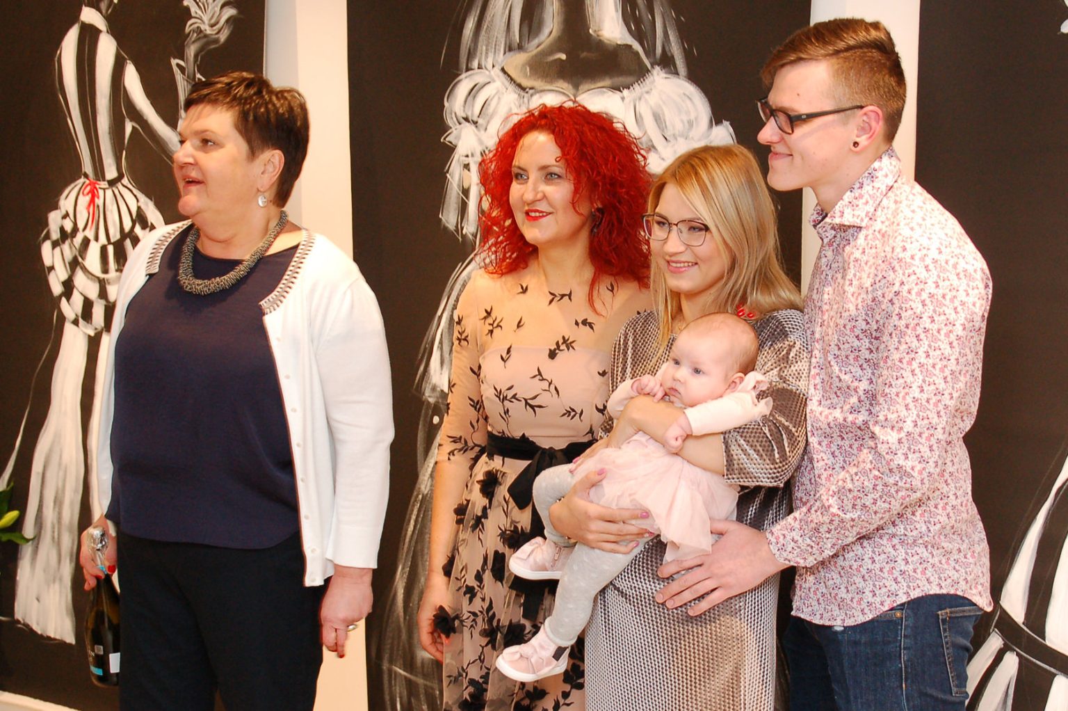 Ogrēnietes, mākslinieces un dizaineres Ilzes Patmalnieces pirmās personālizstādes “…no zīmuļa līdz tērpam” atklāšanā pulcējās mākslinieces ģimene, draugi un liels skaits interesentu.
