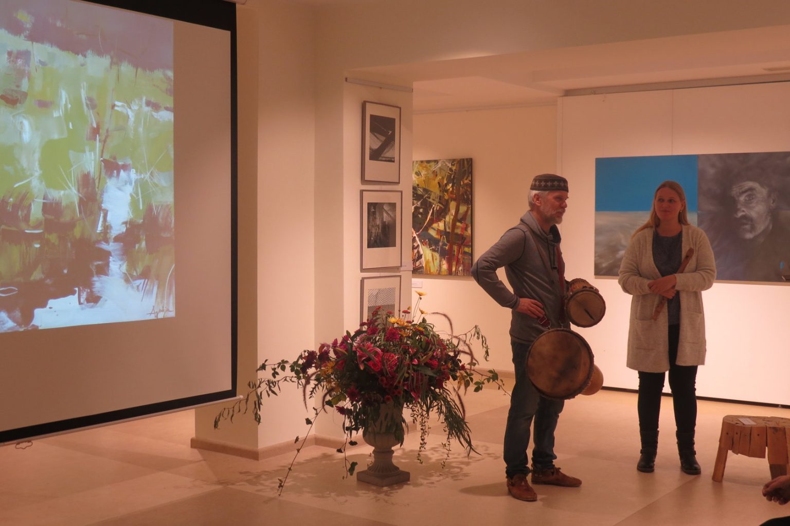 Izstādes “Randali” ietvaros Ogres Vēstures un mākslas muzejā pulcējās mākslas plenēra “Līvzeme” mākslinieki, organizatori un līvu krasta iedzīvotāji, lai atcerētos un dalītos atmiņās par aizvadītajām plenēra dienām Mazirbē.