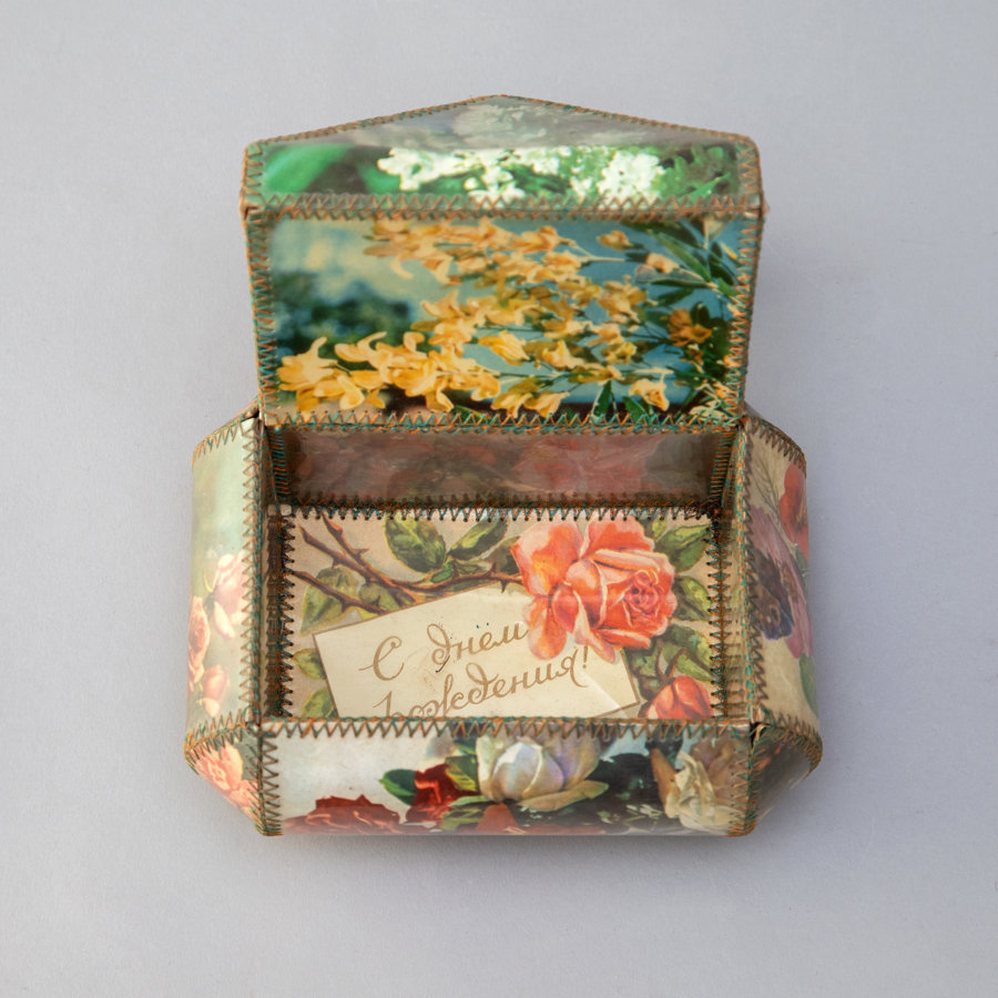 Priekšmetu gatavošana no apsveikuma kartītēm 50. gados bija kļuvusi par iecienītu vaļasprieku. Cilvēki tos gatavoja gan individuāli mājās, gan nelielos uzņēmumos — arteļos plašākai ražošanai un tirdzniecībai. Šādas lādītes tika gatavotas arī rokdarbu stundās skolās ar krievu mācību valodu. Veikalos bija nopērkami speciāli šim veidošanas procesam paredzēti kartīšu komplekti kopā ar piegrieztņu paraugiem, kas liecina, ka arī tolaik bijis pieprasījums pēc ērtām sagatavēm radošām mākslinieciskām izpausmēm.