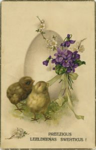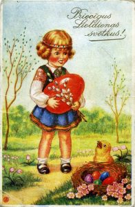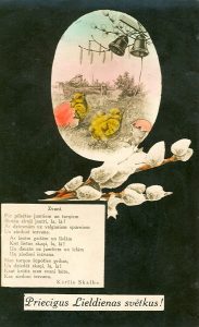 Nāc nākdama, Liela diena, Visi bērni tevis gaida, Visi bērni tevis gaida, Aiz vārtiem sasēduši. Piedāvājam ieskatu apsveikuma kartīšu mākslinieciskajā dizainā un tematikā, mainoties laikiem un vēsturiskajiem notikumiem. Lieldienās esat laipni aicināti lejupielādēt un izprintēt trīs dažādas apsveikuma kartītes, kopā ar bērniem tās izkrāsot vai nu pēc vēsturiskās kartītes parauga, vai ļaujot vaļu savai fantāzijai. […]