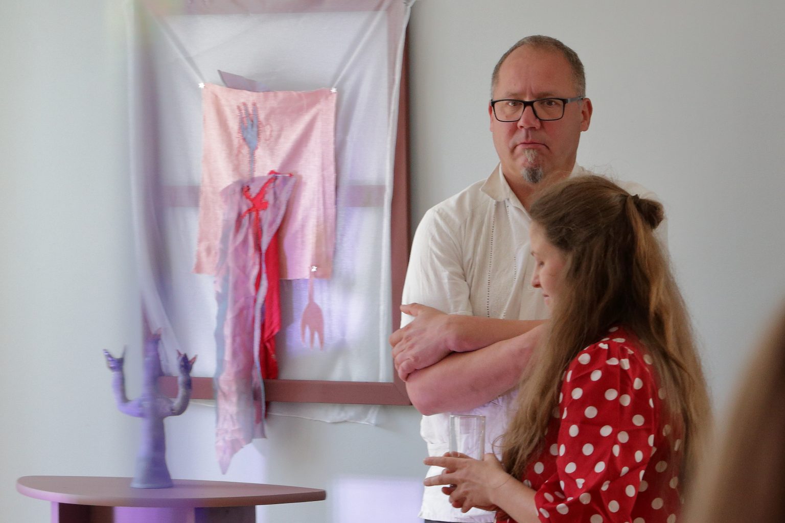 Attēls – kā garīgums, kas eksistē vienā dimensijā – iegūst telpisko uztveri, tam satiekoties ar ikdienas ritmā tapušiem materialitātes motīviem. Krāsa, triepiens, vīle, šuve, forma ir koncepts pats par sevi. Vizualitāte runā vārdu vietā un stāsta ikdienišķus, citreiz intīmus un sāpīgus stāstus.