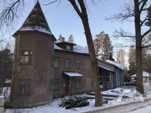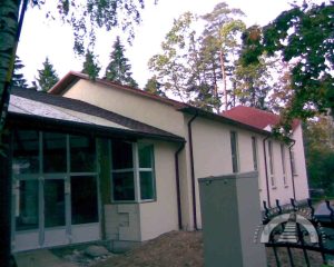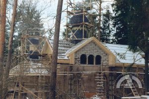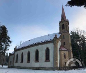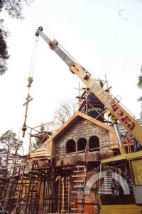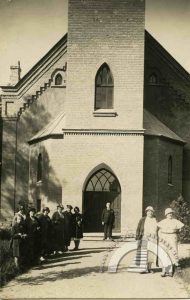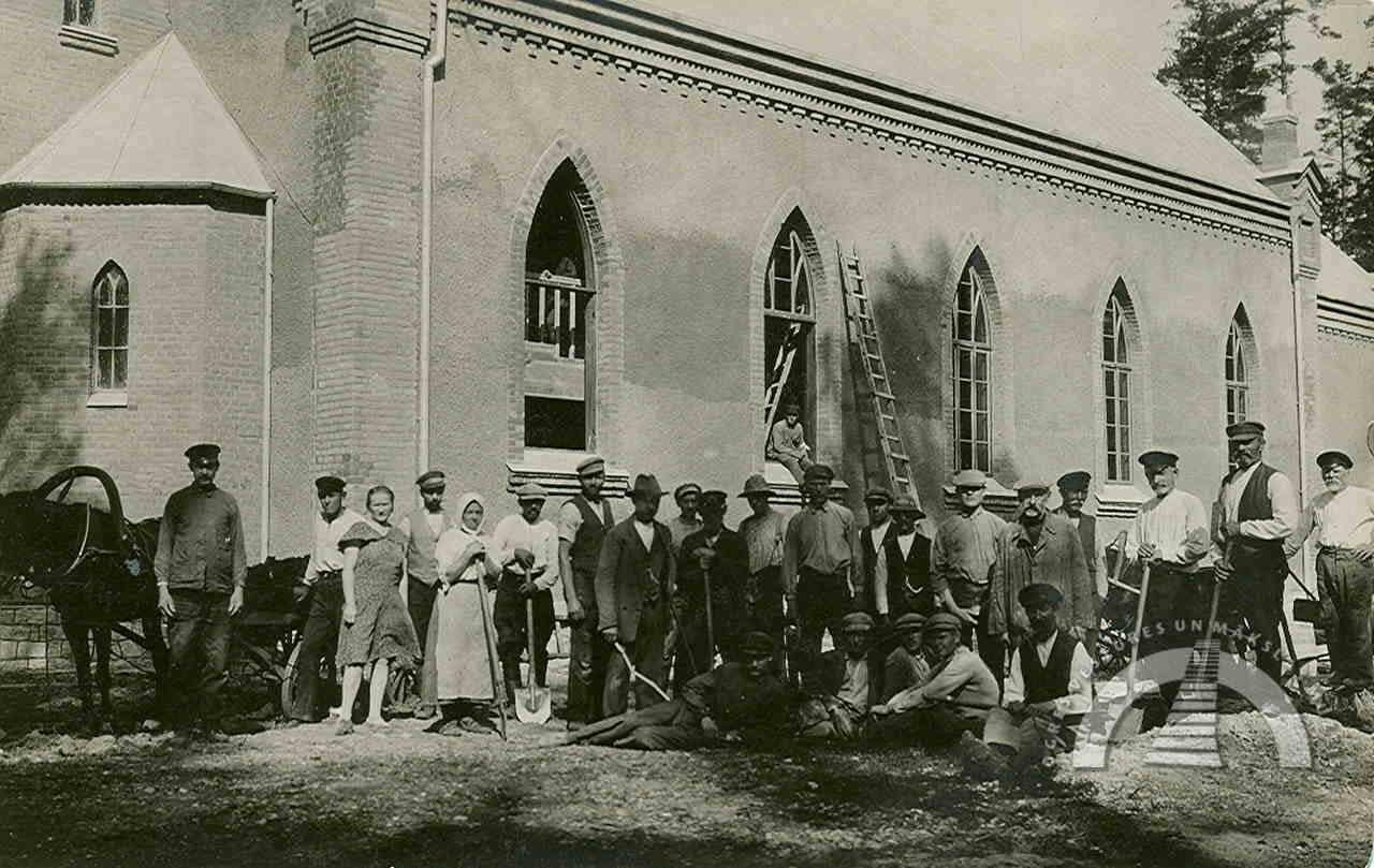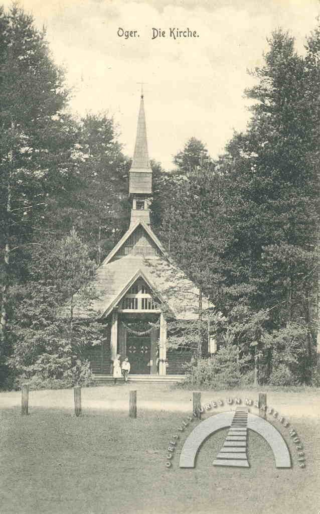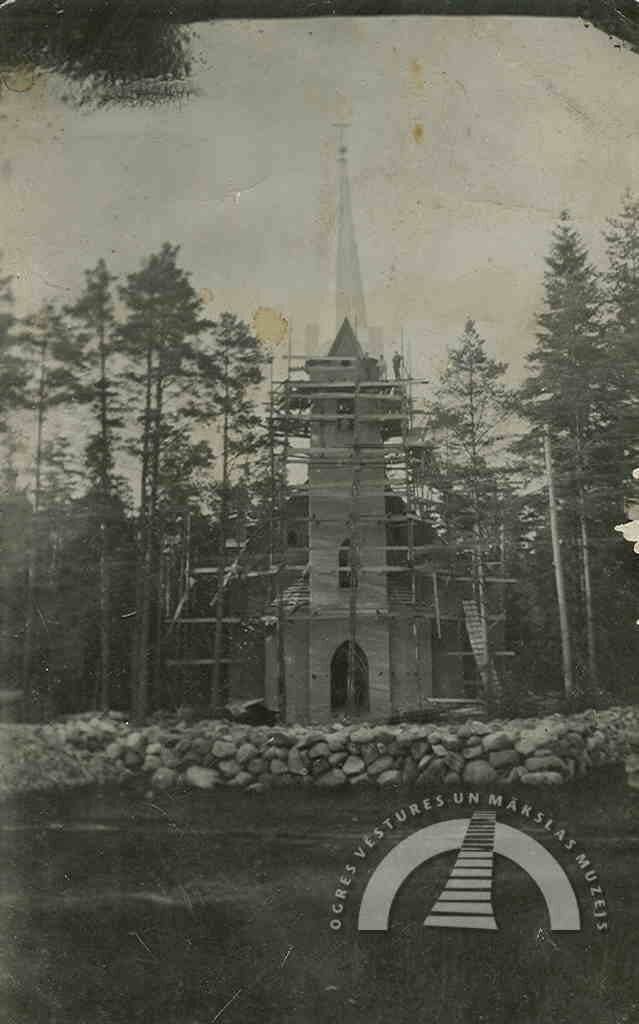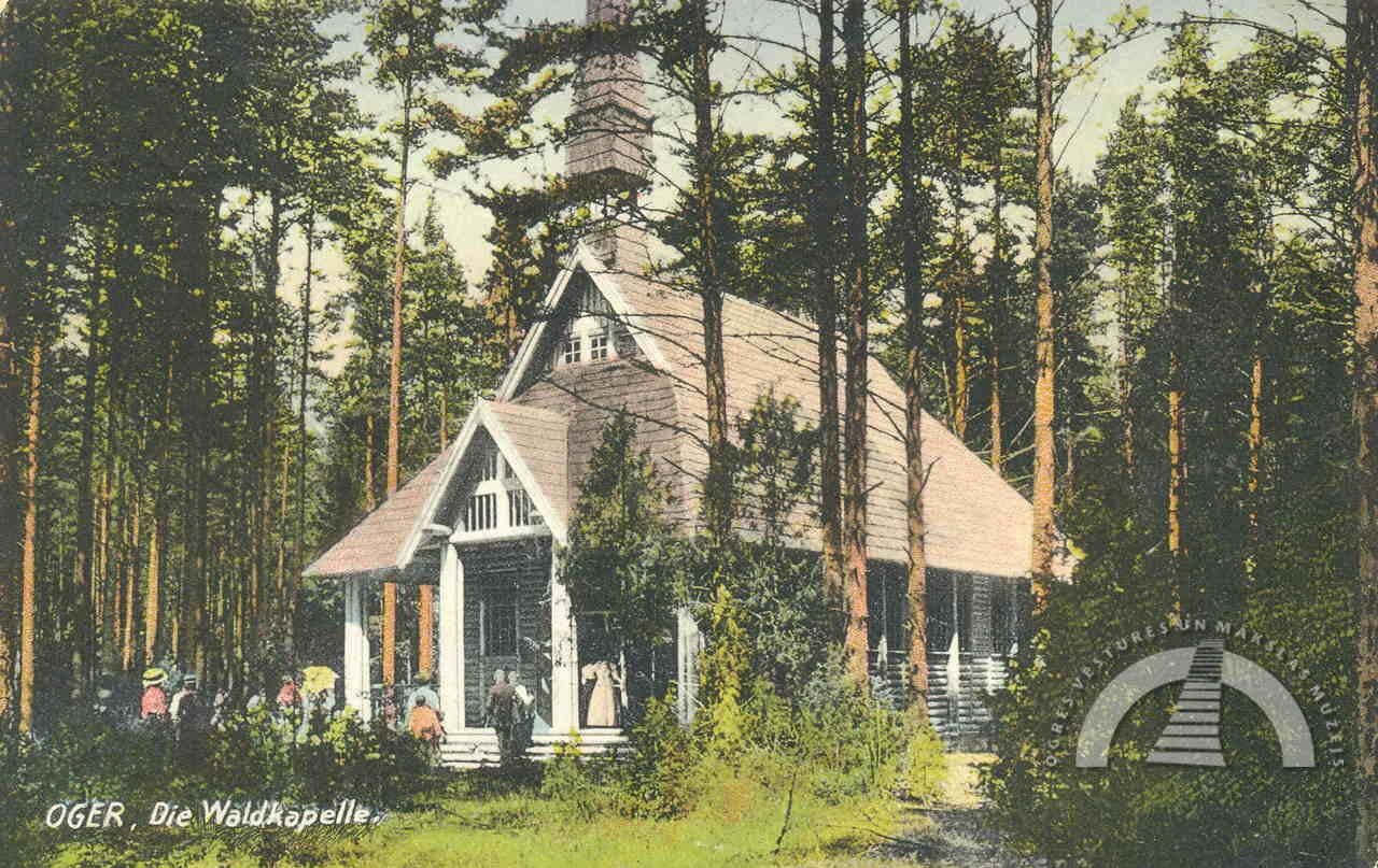 1908. gada nogalē Ogres vasarnieki nolēma būvēt kapelu. Ikšķiles—Salaspils draudze tolaik mācītāja Voldemāra fon Hūna gādībā nopirka gruntsgabalu tagadējās luteriskās baznīcas vietā un pasūtīja baznīcas ēkas projektu — koka būvi, kas stilistiski līdzīga Šveices reģiona arhitektūrai. Arhitekta Edgara Frīzendorfa veidoto kapelu iesauca par Meža kapelu, tajā bija 300 vietas. To iesvētīja 1910. gada 6. jūnijā, un tā darbojās kā sezonāla Ikšķiles—Salaspils draudzes filiāle. 1915. gadā ēka nodega.