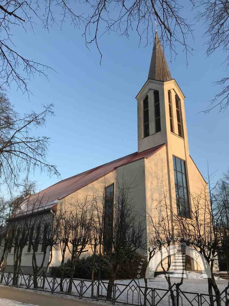 1927. gadā dibināja Ogres vasarnīcu rajona draudzi, kas pēc pilsētas tiesību piešķiršanas Ogrei tika nosaukta par Ogres pilsētas draudzi. Ievēlētā draudzes komiteja veica jaunās baznīcas celtniecības priekšdarbus. Celtnes pamatakmens tika likts 1928. gadā, baznīcu iesvētīja 1930. gada 31. augustā. Tās arhitekts ir Haralds Kundziņš. Baznīcas uzcelšana izmaksāja apmēram 45 000 latu. Tajā ir 422 sēdvietas, no tām 50 ērģeļu korī, un ap simt stāvvietu. Baznīcas zvanu rotā uzraksts “Dzīvos saucu, mirušos apraudu. Ogres pilsētas baznīcai Ziemas svētkos”, tas izgatavots Švenna zvanu lietuvē Rīgā. Baznīcas altārgleznu pēc K. Hūna darba “Kristus otrreizējā atnākšana” veidojis mākslinieks Šēnbergs, un tā ir vietējas nozīmes mākslas piemineklis. Ērģeles baznīcā ierīkotas 1940. gadā.