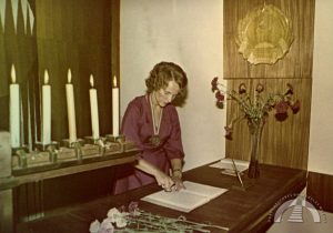 Vēlāk tika noteikts, ka nodaļu pienākumos ietilpst ne tikai reģistrēt dzimšanu, laulību un miršanu, bet veikt arī laulības svinīgo reģistrāciju. Padomju laikā baznīcā reģistrētai laulībai nebija juridiska spēka, tāpēc bija būtiski, ka laulību reģistrācija dzimtsarakstu nodaļā ir ne tikai juridiska, bet arī svinīga. Civilstāvokļa aktu reģistrācijas biroju vadītāju prestižu cēla manis ierosinātā un ar valdības lēmumu 1968. gadā ieviestā amata zīme, kuru vadītājs uzlika, svinīgi reģistrējot laulību. Kopā ar Rīgas modeļu nama dizaineriem izstrādājām ieteikumus un vēlāk arī tērpu modeļus nodaļu vadītāju svinīgo reģistrāciju tērpu izvēlei. Lai pilnveidotu dzimtsarakstu darbinieku runas kultūru un stāju, uzaicinājām pazīstamus teātru režisorus vai aktierus, kuri publisko runu individuāli mācīja katram vadītājam.”