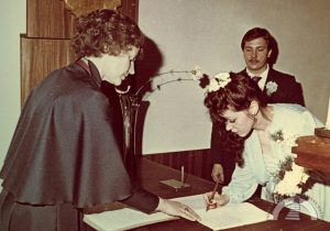 Ilggadējā Dzimtsarakstu departamenta direktore Ārijas Iklāva atminas: ”Abi ar Raimondu 1955. gada 3. septembrī ieradāmies Rīgas pilsētas Civilstāvokļa aktu reģistrācijas nodaļā Kirova ielā 63 (tagadējā Elizabetes iela), kur otrajā stāvā nelielā telpā tika reģistrētas visu rīdzinieku laulības. Man bija gaišzila žoržeta kleita. Tajā laikā balto kleitu un līgavas plīvuru uzskatīja par kapitālisma paliekām un padomju jauniešiem nepiedienīgu. Tā laika likums neprasīja arī laulību lieciniekus.