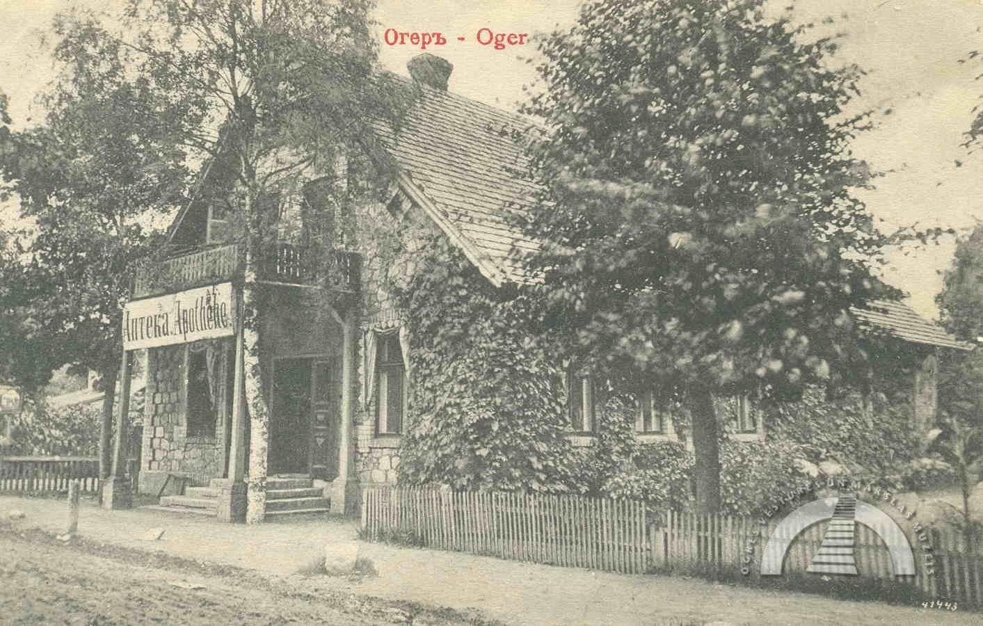 Ogres centra ainava nav iedomājama bez savdabīgās aptiekas ēkas, kas tik pazīstama un pierasta ogrēniešiem. Ne viena vien pilsētnieka gaitas vedušas uz aptieku ar arku virs tās ieejas laukuma līdzās tagadējam kioskam un pulkstenim. Šī ir viena no senākajām pilsētas ēkām un glabā daudz interesantu stāstu.