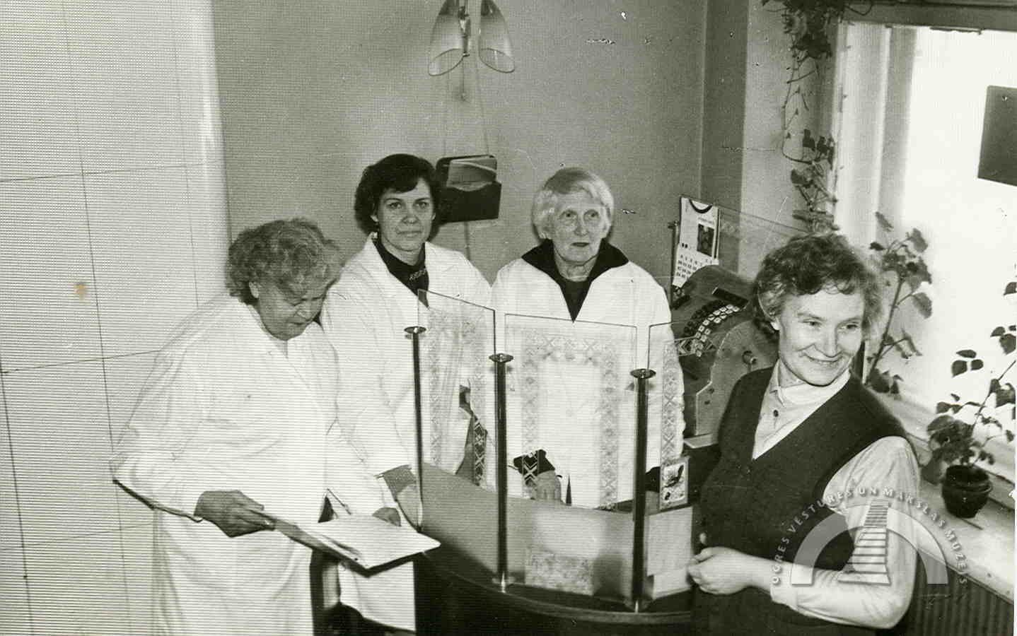 Arī citādā ziņā apstākļi krietni uzlabosies. Paredzēta atsevišķa istaba atpūtai, būs personiskās higiēnas telpa, dušas, garderobe virsdrēbēm un spectērpiem. Atbilstoši prasībām varēsim izgatavot medikamentus, jo būs saldējamā kamera, varēsim gatavot sterilo injekciju šķīdumus, atsevišķi glabāsies dezinfekcijas līdzekļi.” [“Padomju Ceļš”, 30.08.1988., V. Aizupe “Ogresgrīvas aptieka? Kāpēc ne?”]