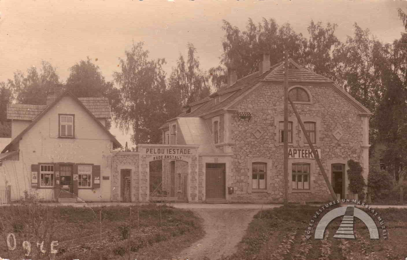 1925. gada maijā aptieka sāka darbu. Aptiekas pagalmā izbūvēja pirti, kuru atklāja 1927. gadā. Tā bija arī peldu iestāde, kur pilsētas iedzīvotājiem un viesiem bija iespēja apmeklēt ārstnieciskās vannas (ogļskābes, skābekļa, sēra, skuju, dažādu sāļu).