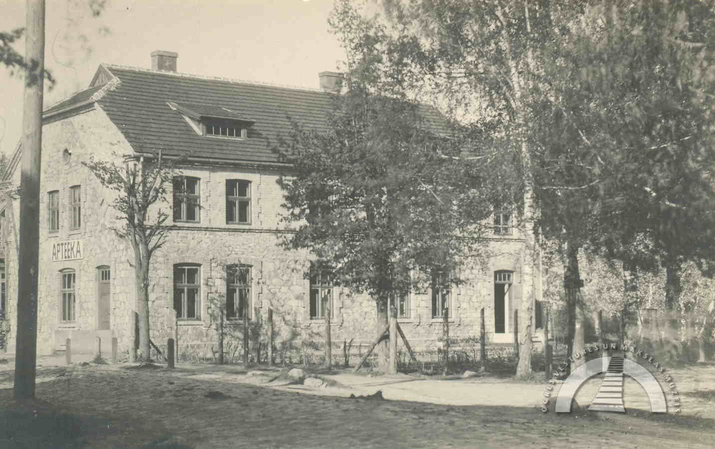 Pirmā pasaules kara laikā aptiekas ēka tāpat kā lielākā daļa pilsētas tika nopostīta, no tās pāri bija palikuši tikai mūri.