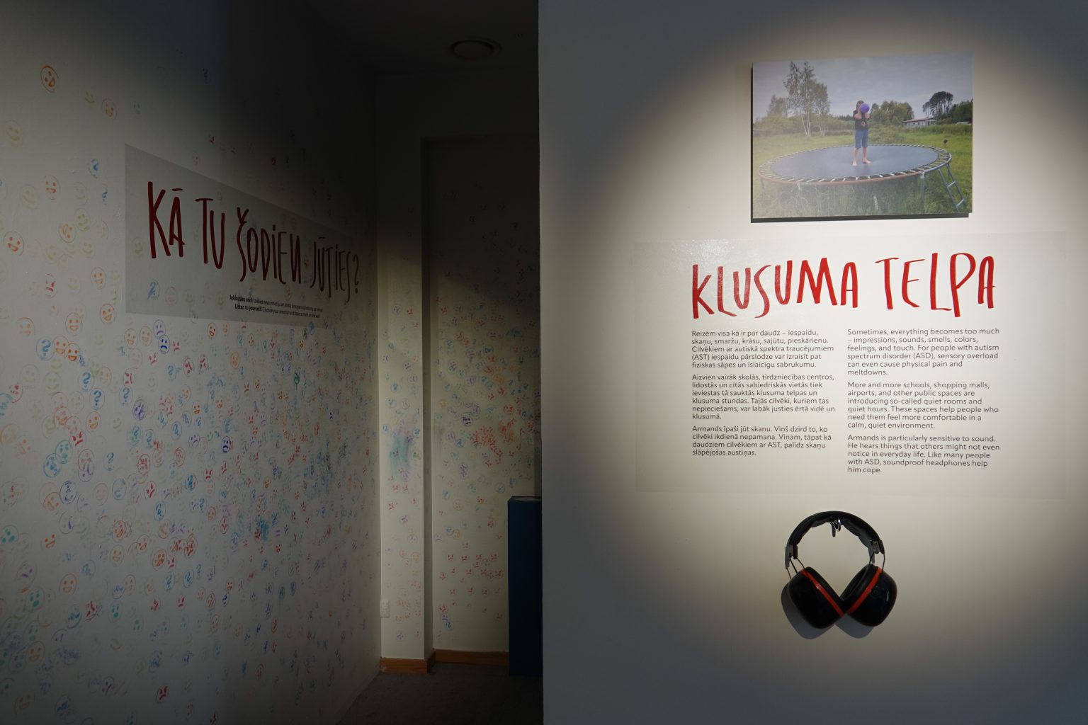 Izstāde bija fotogrāfes Daces Voitkevičas vizuāls personisks stāsts ar interaktīviem elementiem par bērna dzīvi ar autiskā spektra traucējumiem. Autiskā spektra ierobežojumi reizēm ir neredzami, taču sabiedrības izpratne var ievērojami veicināt atbalstu dažādām vajadzībām. Cilvēkiem ar autiskā spektra traucējumiem ir bagāta iekšējā pasaule, taču nereti grūtības sagādā tajā dalīties ar citiem. Tāpat kā visi, viņi savā veidā izzina pasauli, meklē saskarsmi un drošību. Izprotot dažādas vajadzības, izstāde aicina apzināties kopīgo un atšķirīgo cilvēku ikdienā.